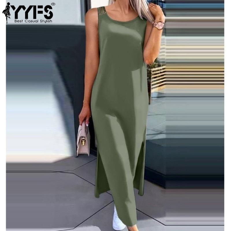YYFS Dámská móda Léto Jaro Jednobarevný potisk Neformální šaty bez rukávů s výstřihem do O s volným pasem