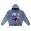 DTG print Knitted Denim Zip-Up Hoodie Hunter Born to hunt Brother Print Zipper Hoodies