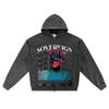 DTG print Knitted Denim Zip-Up Hoodie Forgotten Brother Print Zipper Hoodies