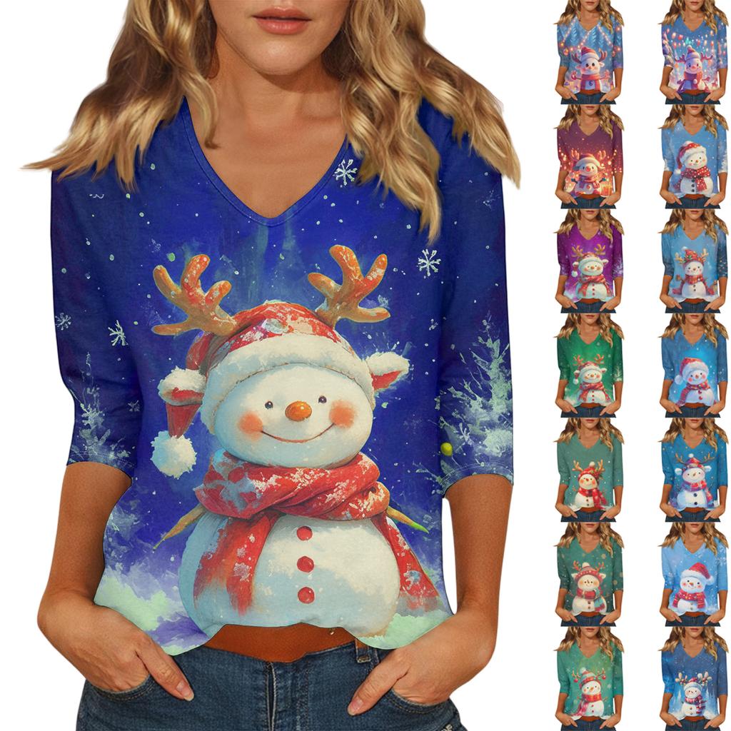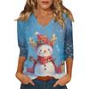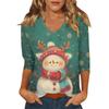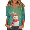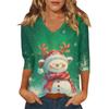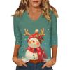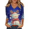 Dámský vánoční potištěný módní ležérní top se sedmiosminovými rukávy a výstřihem do V