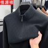 Hengyuanxiang Men's Pure Wool Half-Zip Stand-Collar Knit Sweater