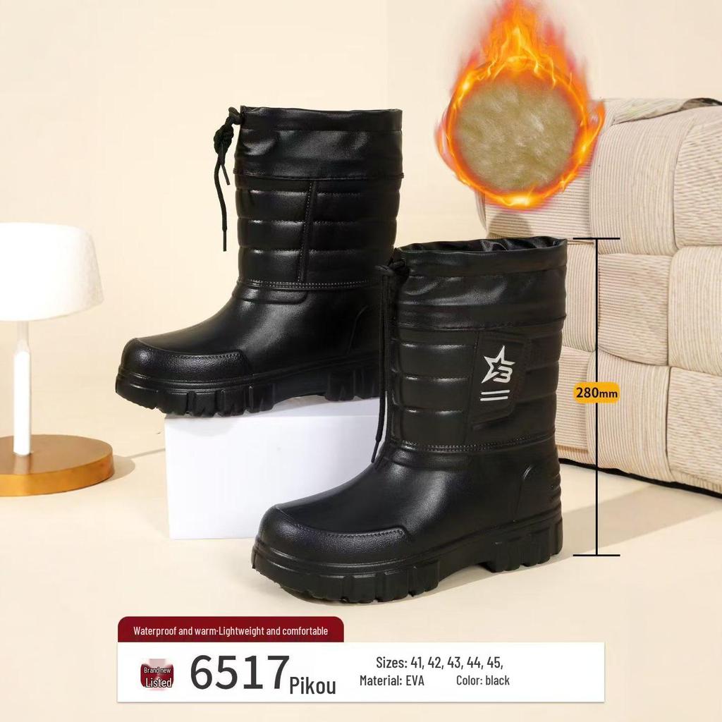 Pánské zimní sněhule s fleecovou podšívkou: Teplé, Nepromokavé, Protiskluzové, Lehké, Pohodlné bavlněné boty se stahovací šňůrkou na ryby