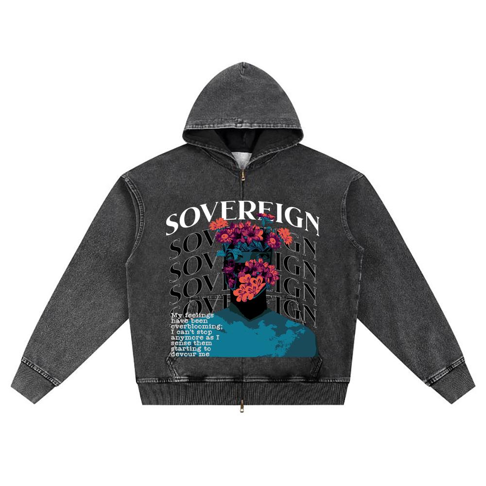 DTG print Knitted Denim Zip-Up Hoodie Sovereign Brother Print Zipper Hoodies