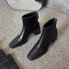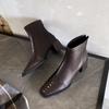 BEIJIANI 5598-10 Rivet Ankle Boots for Women, Chunky High Heels, Square Toe, Back Zipper - Perfect for Autumn & Winter.