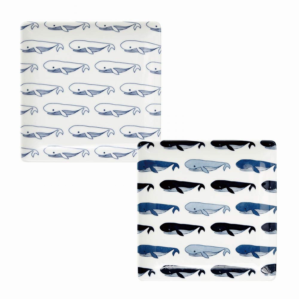 natural69 Set cocomarine x Janke Square 2 Designs Colored Whale White Whale Natural 69 Hasami Ware Cocomarine x Janke Square Microwave and Dishwasher