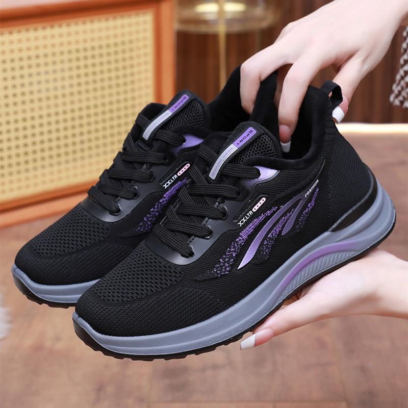 Winter Women's Plus Velvet Warm Non-Slip Flyknit Sports Shoes - Soft Sole for Mid-Aged & Elderly moms.