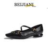 Beijiani Women's Cross-Buckle Sheepskin Mary Jane Square-Toe Flats