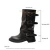 Introducing the perfect blend of style and comfort for the cooler seasons, these women's mid-calf boots offer a chic addition to your autumn and winter wardrobe. Featuring an innovative 8cm hidden heel, these boots add a subtle lift without compromising on comfort. The thick rubber sole ensures durability and a firm grip, ideal for navigating various terrains. Crafted from high-quality microfiber, the upper offers a sleek and sophisticated appearance, complemented by a fashionable buckle and a unique wrinkled design. Inside, the fiber lining provides added warmth and comfort, making these boots a must-have for style-conscious women looking to step up their seasonal fashion game.