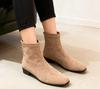 Experience the perfect blend of style and comfort with these Korean retro square toe suede boots. Designed specifically for women, these boots feature a versatile chunky heel that enhances height while ensuring stability and all-day comfort. Crafted with a suede upper, they offer a luxurious feel and a trendy look that's perfect for the autumn and winter seasons. The rubber sole provides excellent traction, making them suitable for various surfaces. Inside, the polyurethane insole cushions your feet, and the sheepskin lining adds an extra layer of warmth and softness. Ideal for fashion-forward individuals, these short boots effortlessly complement any wardrobe.