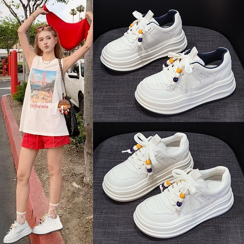 Elevate your style with these chic and versatile women's sneakers, featuring a 7cm thick sole for a subtle height boost. Crafted with premium cow leather, these white lace-up sneakers offer durability and a sleek, modern look. The microfiber lining ensures a comfortable fit, while the polyurethane insole provides excellent support for your feet. Designed with a classic lacing closure, these platform athletic shoes seamlessly blend fashion and functionality, making them an ideal choice for any casual or sporty ensemble.