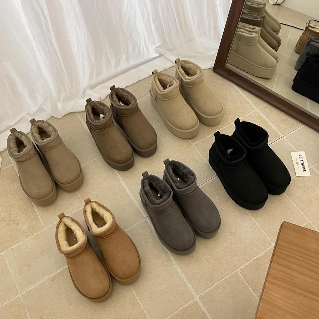 Henan Sangpo Short Sheepskin Wool Snow Boots - Mini Thick Sole 5cm