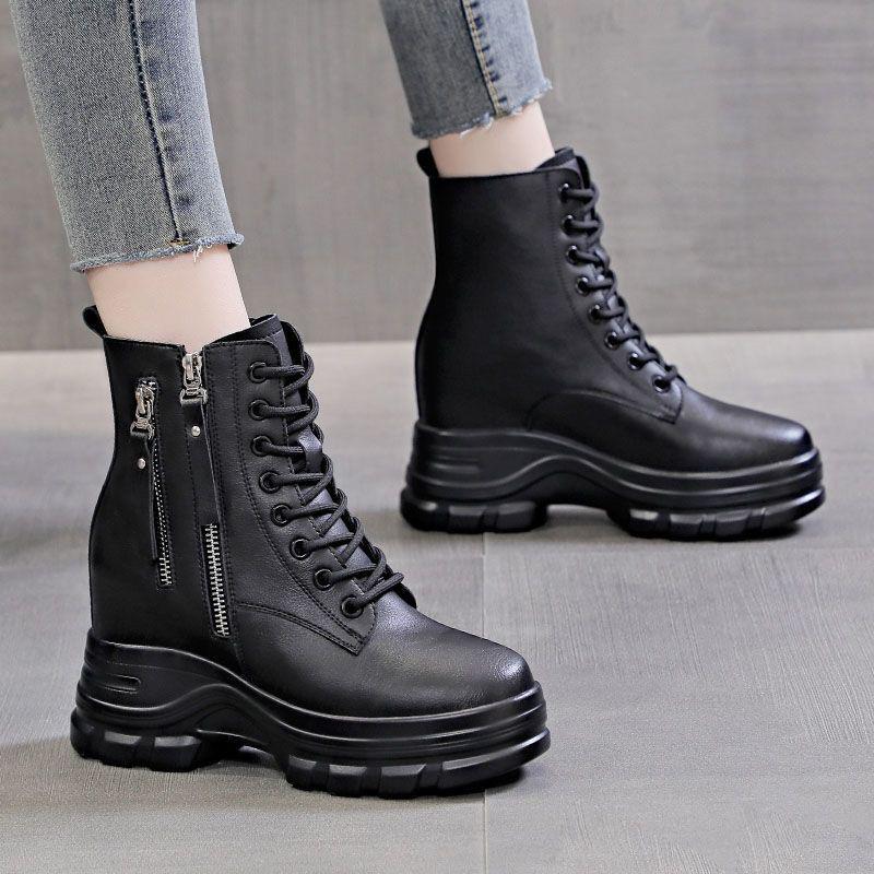 2025 Autumn Women's Genuine Leather Hidden Heel Martin Ankle Boots - Versatile Style with Thick Sole for Petite Sizes.