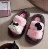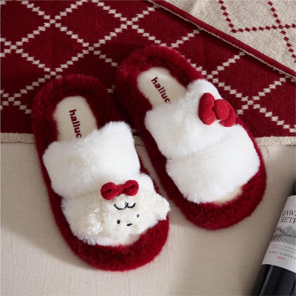 Zimní dámské plyšové pantofle s mašlí, protiskluzové