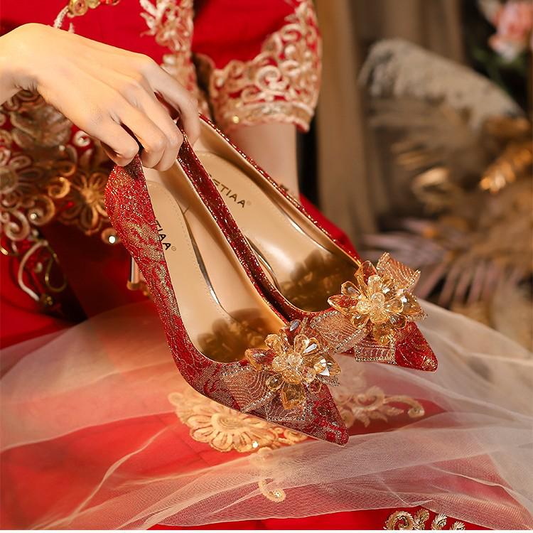 Zažijte eleganci a pohodlí ve svůj výjimečný den s těmito nádhernými svatebními lodičkami na jehlovém podpatku.. Tyto boty, které se vyznačují špičatou špičkou a jsou zdobeny jemnou mašlí a třpytivými krystaly, dokonale spojují tradiční čínský styl s moderním nádechem.. Jsou vyrobeny ze svršku z mikrovlákna, podšívky z mikrovlákna a polyuretanové stélky a zajišťují trvalé pohodlí po celou dobu vaší oslavy.. Gumová podrážka poskytuje vynikající přilnavost, díky čemuž jsou ideální pro vnitřní i venkovní akce.. Ideální pro nevěsty hledající dotek sofistikovanosti a elegance.