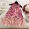 Tyto elegantní dívčí zimní šaty kombinují tradiční styly Hanfu a Cheongsam s moderním nádechem.. Je vyroben z vysoce kvalitního polyesteru, který zajišťuje pohodlí a teplo během chladnějších měsíců.. Šaty mají bezrukávový design, který umožňuje snadné vrstvení s vašimi oblíbenými bundami nebo kardigany.. Vrcholem šatů je jejich krásná tylová sukně, která dodává jemný a rozmarný nádech.. Tyto šaty, ideální pro slavnostní příležitosti nebo kulturní oslavy, nabízejí jedinečnou směs dědictví a současné módy, což z nich činí výjimečný kousek v každém šatníku.