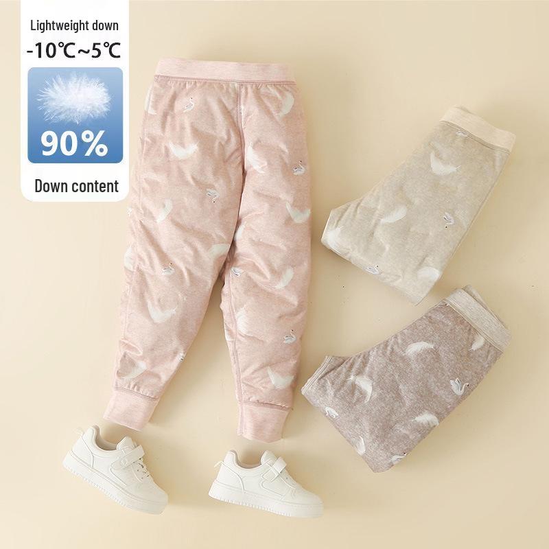 These kids' winter thermal pants are designed to keep your little ones warm during the cold season. Featuring a high waistline for added coverage and comfort, they are crafted with durable polyester material and insulated with 90% white duck down. The thickened liner offers excellent thermal protection, making them perfect for both boys and girls who love outdoor adventures in chilly weather.