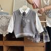 This stylish girls' set is perfect for the autumn season, featuring a cozy long-sleeve sweater vest paired with a classic shirt and a chic pleated skirt. Crafted from high-quality cotton, the ensemble ensures comfort and breathability, making it ideal for all-day wear. The versatile design is suitable for both casual outings and formal occasions, offering a trendy and timeless look for your little one.