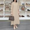 ZANZEA Women Casual V-Neck Solid Color Loose 3/4 Sleeve Long Dress