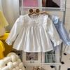 This chic and fashionable shirt is perfect for the autumn and spring seasons, featuring elegant ruffle sleeves that add a stylish touch to any outfit. Made from high-quality cotton, it ensures comfort and breathability for all-day wear. The long sleeves make it ideal for layering, providing both warmth and versatility in various weather conditions. Whether paired with jeans or a skirt, this shirt is a great addition to any girl's wardrobe looking to embrace the charm of Korean fashion.