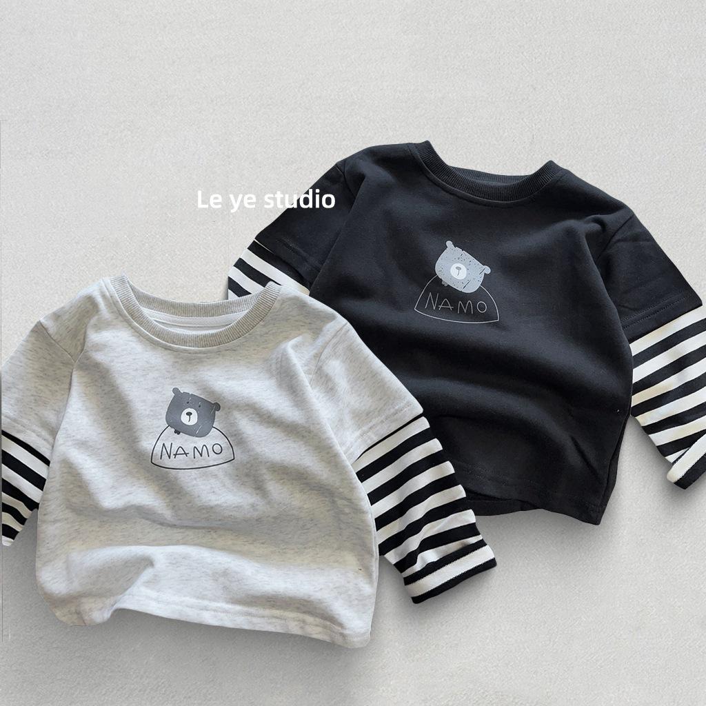 Dětské tričko s dlouhým rukávem v korejském stylu s kresleným potiskem - Podzimní móda Falešný dvoudílný top pro chlapce a dívky