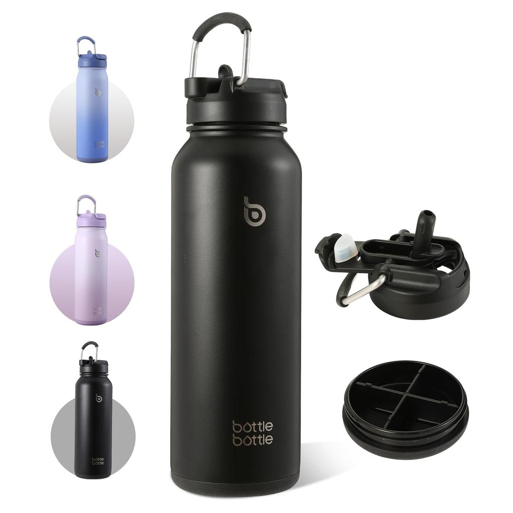 BOTTLE BOTTLE Water Bottle, 1.2 Liter, Large Capacity, Stainless Steel, Leak-Proof, 2-Way Lid, Suitable for Girls, Boys, and Adults, 1.2L, with Straw