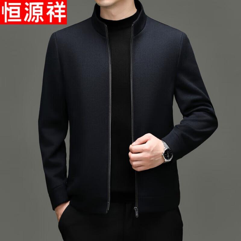 Hengyuanxiang Men's Premium Thickened Wool Blend Wrinkle-Free Zipper Stand Collar Jacket