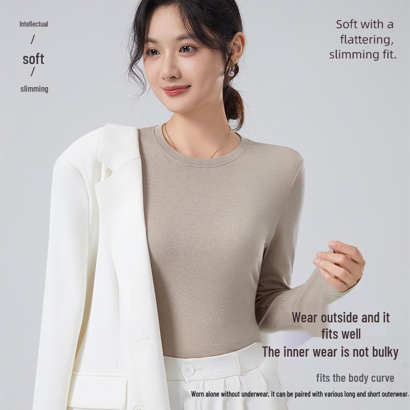 New Autumn/Winter Modal Wool Crew Neck Base Layer Top - White Long Sleeve Shirt