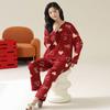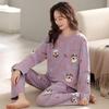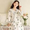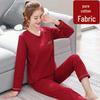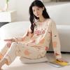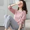 Dámské pyžamo z čisté bavlny - Jarní/podzimní jednobarevné, kulatý výstřih, dlouhý rukáv, volné, ležérní, pohodlný domácí oděv.