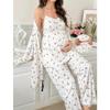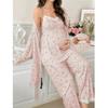 Sweet Floral Maternity Pajamas: European & American Three-Piece Set with Cardigan, Sling Top, and Long Pants for Spring & Autumn
