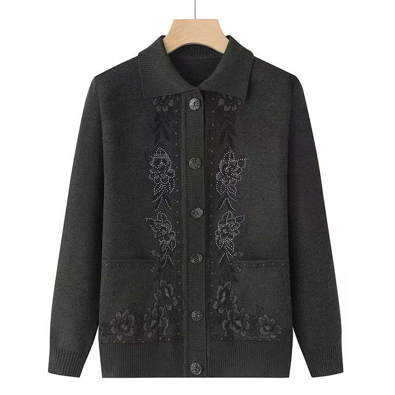 Babiččin pletený klopový všestranný kardiganový svetr kabát pro lidi středního věku a starší jarní podzimní oblečení pro maminku starou paní top