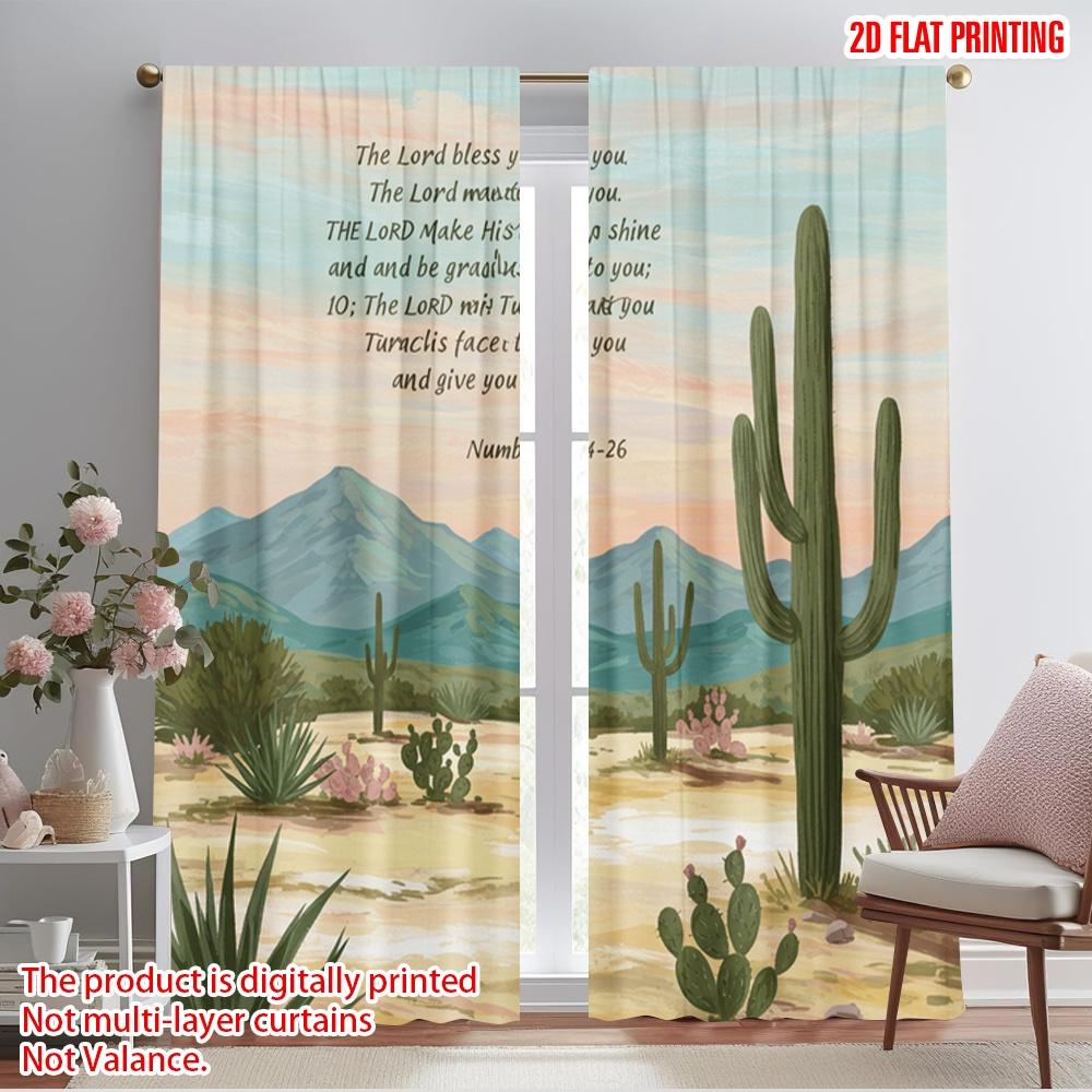 2pcs 2D flat printing Party Curtain Desert Blessing Landscape Polyester Without Electricity Festive Holiday Perfect for Home