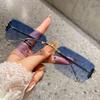 Frameless Square Sunglasses For Women Men's New Narrow Frame Sunglasses Retro Leopard Head Metal Sunscreen 90282