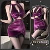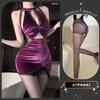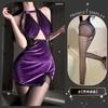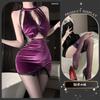 Sexy underwear sexy hot lace splicing velvet temperament gathering and thin purple classical neck cheongsam