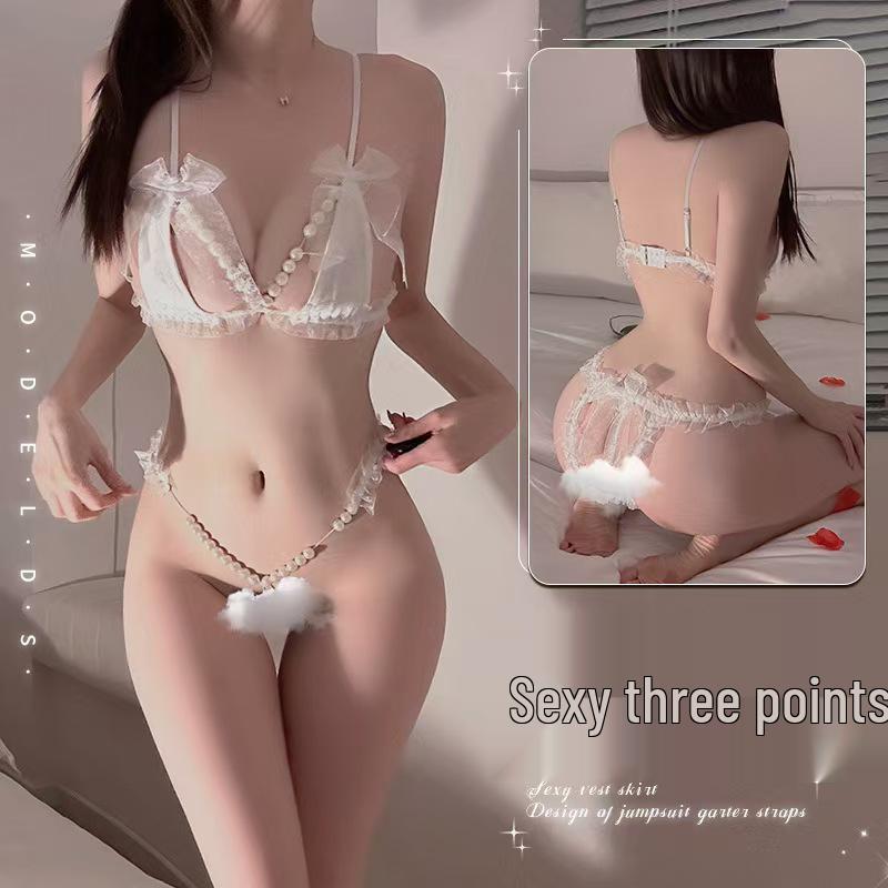 Elegant Lace Pearl Thong: Sexy, Quick-Release Lingerie for Enhanced Passion