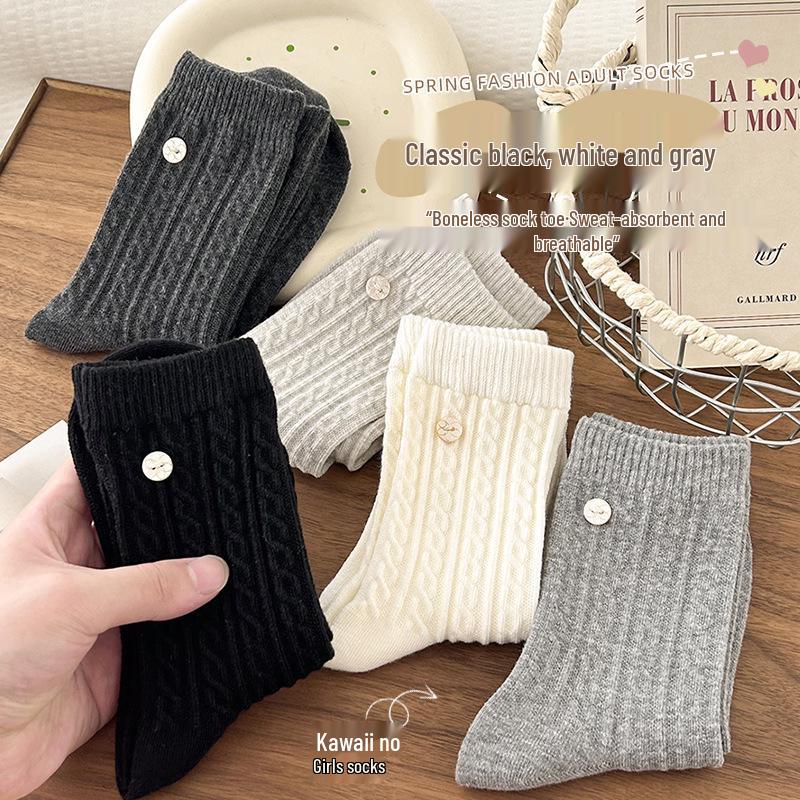 Women's Extra Thick Cable Knit Mid-Calf Socks in Trendy Gray - Cozy Autumn/Winter Japanese Style
