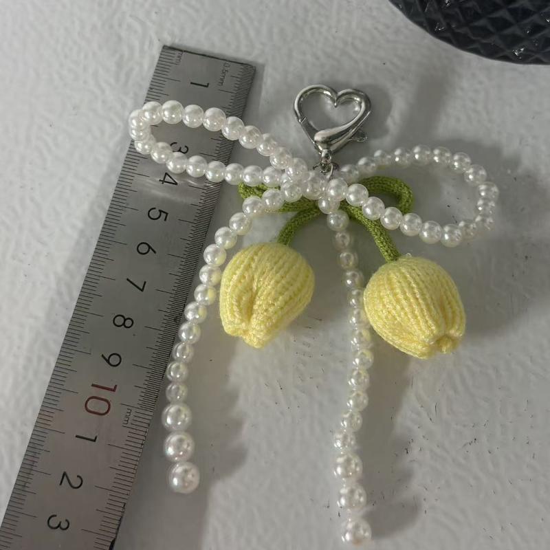Svěží Sladký Pletený Tulipán Korálkový Mašličkový Přívěsek na Klíče Y2K Sladký Mašličkový Kroužek na Klíče Přívěsek Držák na Klíče od Auta Dekorace na Zavěšení na Tašku Dárky