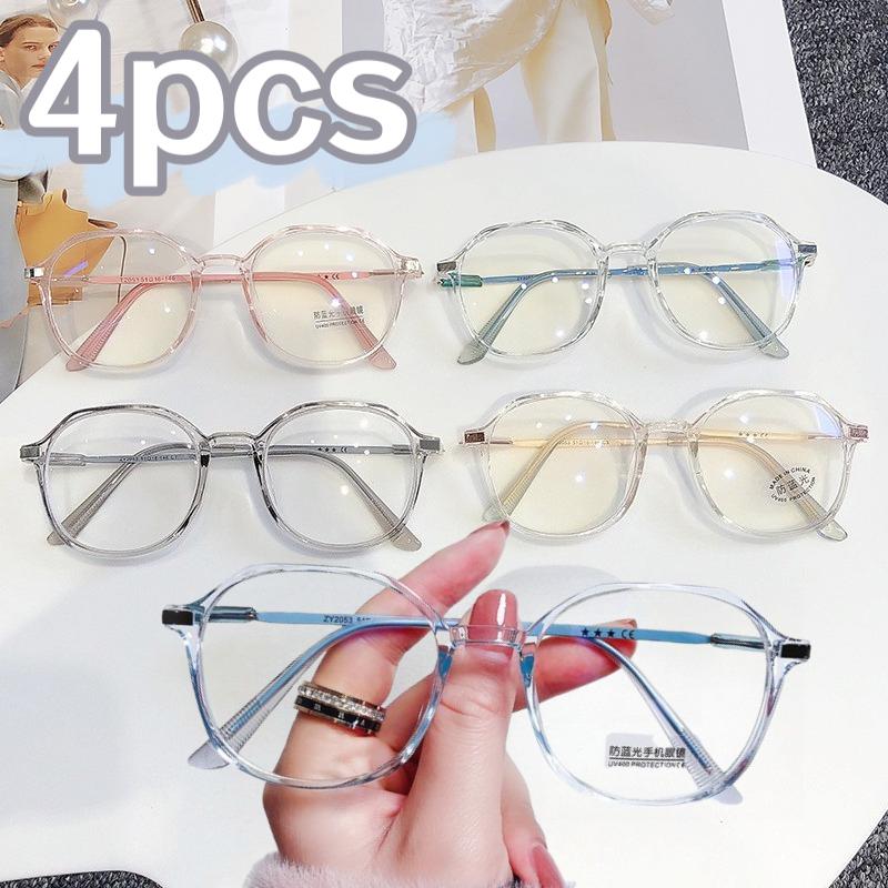 4PCS Fashion Round Glasses Replaceable Lens Plain Transparent Computer Eyeglasses Anti-Blue Light Elegant Eyewear Women Men