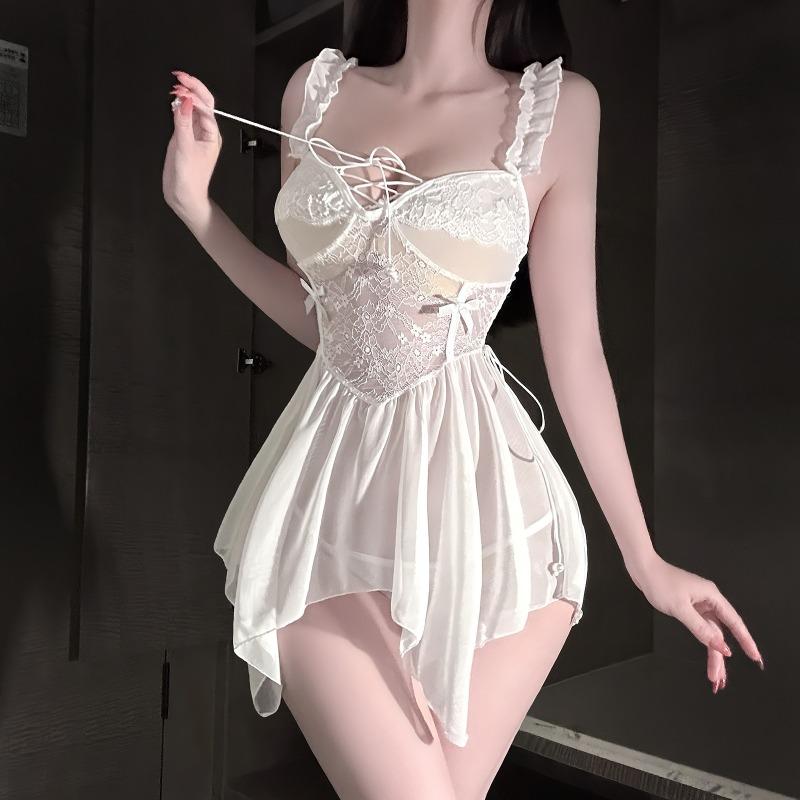 Sexy underwear, sexy pajamas, women's suspender, nightdress, medium and long lace, low chest with chest pad, loungewear
