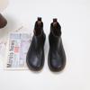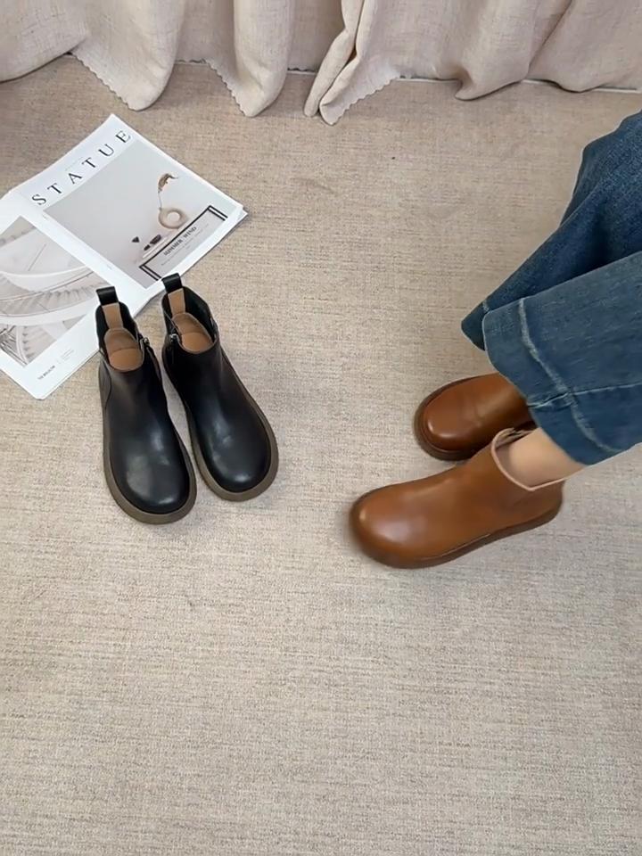 Johnature Genuine Leather Women's Short Boots Retro Side Zipper Round Toe Flat Chelsea Boots