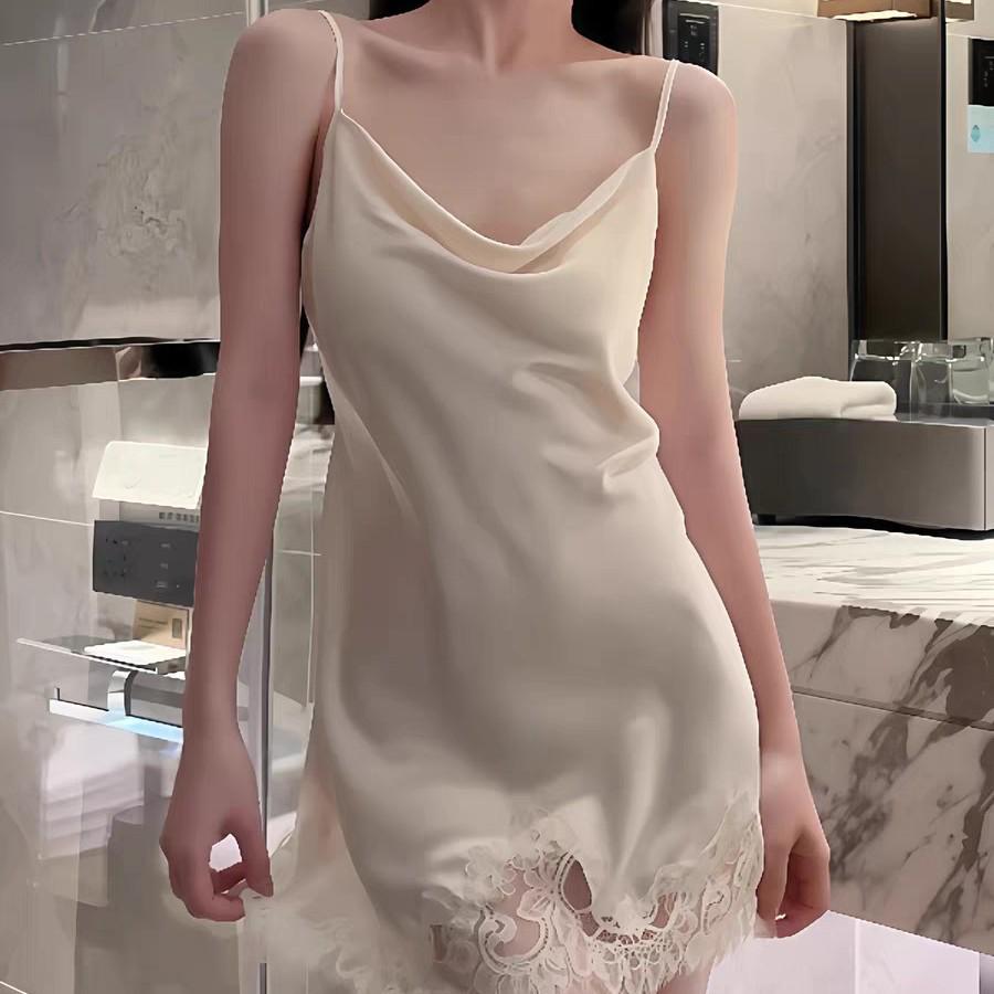Autumn 2025 Light Luxury Lace Pajamas - Sexy Cowl Neck Camisole with Chest Pad