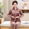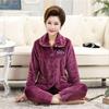 Dámský flanelový pyžamový set plus size pro podzim a zimu - Hřejivé domácí oblečení volného střihu pro dámy středního a staršího věku