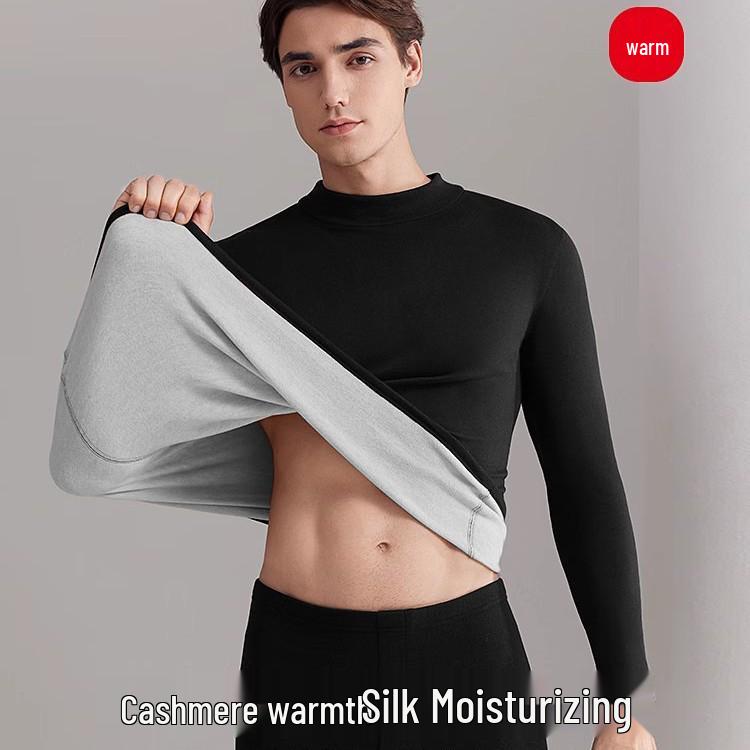 Men's Cashmere Fleece-Lined Thermal Underwear Set - Half High Neck, Warm Autumn Clothes & Pants