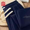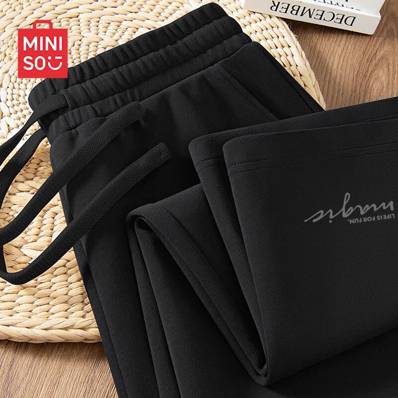 These Miniso men's casual straight-leg pants offer comfort and style with a loose fit and drawstring waistband. Crafted from a breathable 65% cotton and 35% polyester blend with slight stretch, they feature a subtle 'mk' letter graphic. Perfect for daily wear, home, or light activities, these full-length trousers are suitable for spring and autumn seasons.
