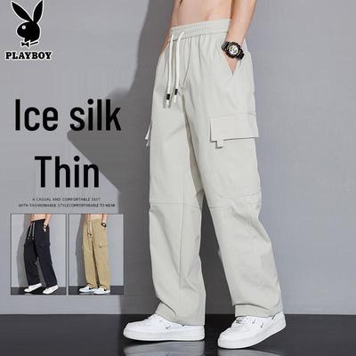 PLAYBOY Men's Ice Silk Cropped Tapered Pants