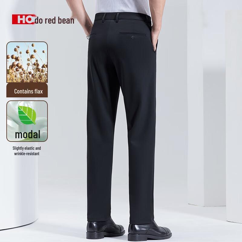 Hongdou Men's Ice Silk Linen Modal Anti-Wrinkle Straight Leg Casual Trousers