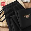 Experience comfort and style with MINISO Men's Loose Fit Straight Leg Sweatpants. Ideal for spring and autumn, these versatile pants are crafted from a heavyweight cotton-blend (65% cotton, 35% polyester) with slight stretch. They feature a relaxed, wide-leg design, straight hem, and an adjustable drawstring waist for a comfortable fit. A subtle 'M' diagonal print adorns the front left thigh, adding a touch of modern simplicity.