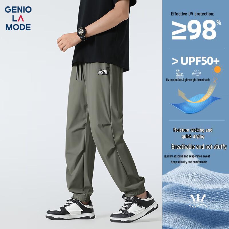Zůstaňte v létě v pohodlí a styloví s pánskými ležérními joggery GENIOLAMODE. Tyto všestranné dlouhé kalhoty mají uvolněný, rovný střih s elastickými manžetami u kotníků a jsou vyrobeny z lehké, vysoce elastické, rychleschnoucí a prodyšné směsi nylonu a spandexu.. Nabízejí vynikající vlastnosti odvádějící vlhkost, jednoduchý design se stahovací šňůrkou v pase a decentní potisk 'Sleeping Panda X', ideální pro každodenní nošení nebo outdoorové aktivity.
