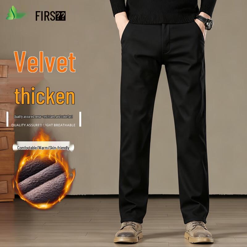 FIRS Men's Fleece-Lined Cotton Blend Straight-Leg Pants