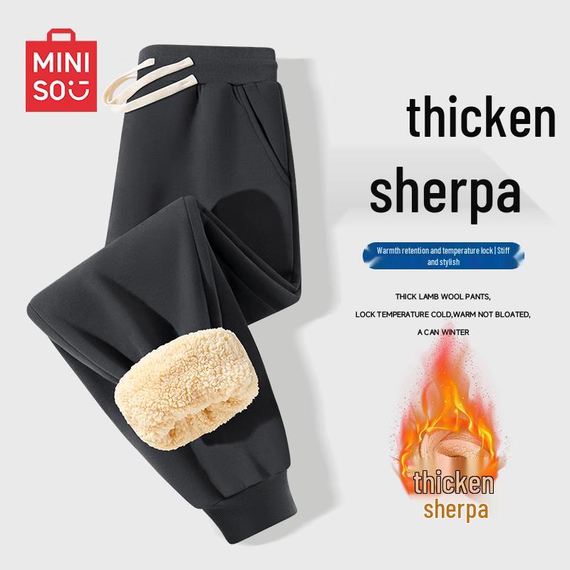 Experience ultimate comfort and style with MINISO Men's Fleece-Lined Jogger Pants. Perfect for autumn and winter, these thickened, warm sweatpants feature a solid color, slight stretch, and a versatile design. With a loose fit, natural waist, and tapered cuffs, they are ideal for casual daily wear or lounging at home. Made from a durable 65% cotton and 35% polyester blend, they offer both warmth and flexibility for teenagers and young adults.