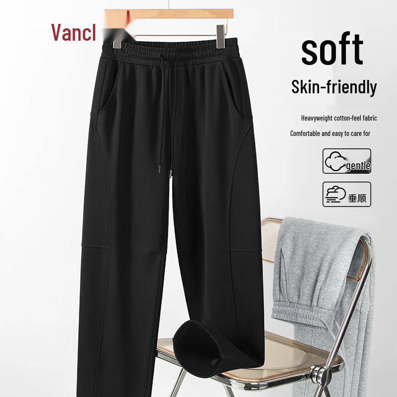 Discover the VANCL Men's High Street Slim-Fit Sweatpants, perfect for autumn and everyday wear. Crafted from a soft, heavy cotton-blend (65% Cotton, 35% Polyester) for a skin-friendly feel and slight stretch comfort. These casual long pants feature a drawstring waist, a straight-leg design for a modern, slimming silhouette, and a high street style with subtle texture details. Ideal for both teens and young adults seeking comfort and style.